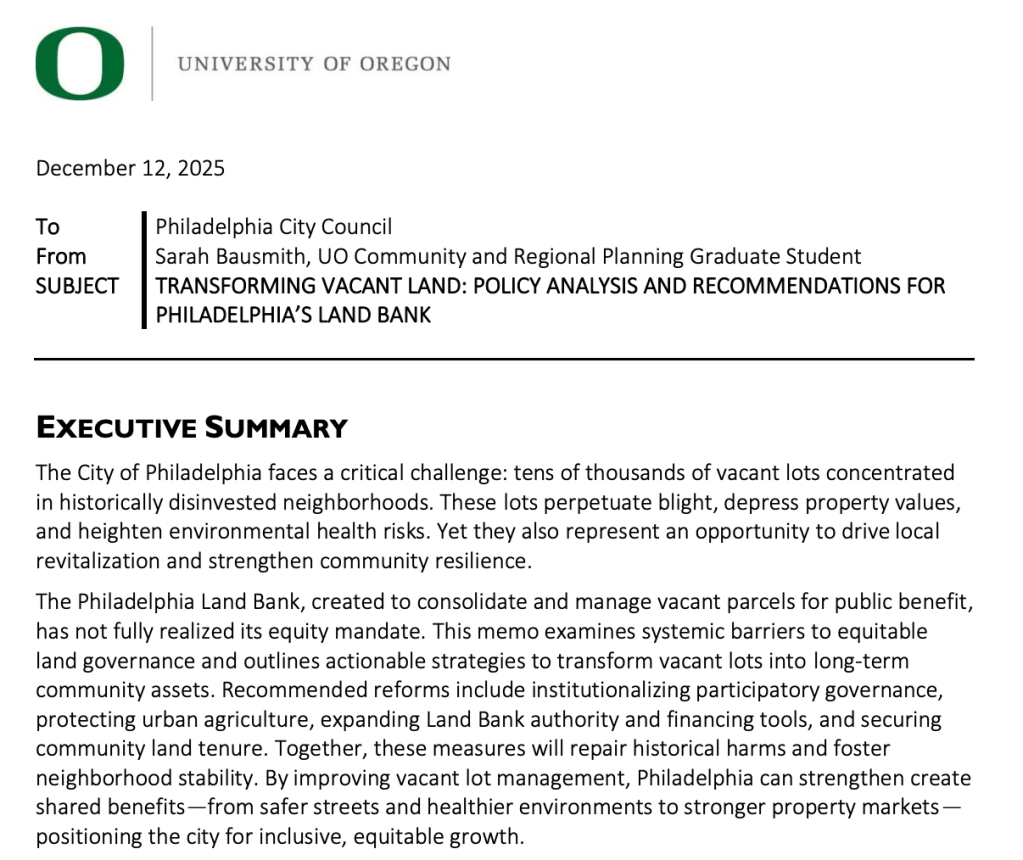 Policy Memo: Vacant Lots and the Philadelphia Land Bank